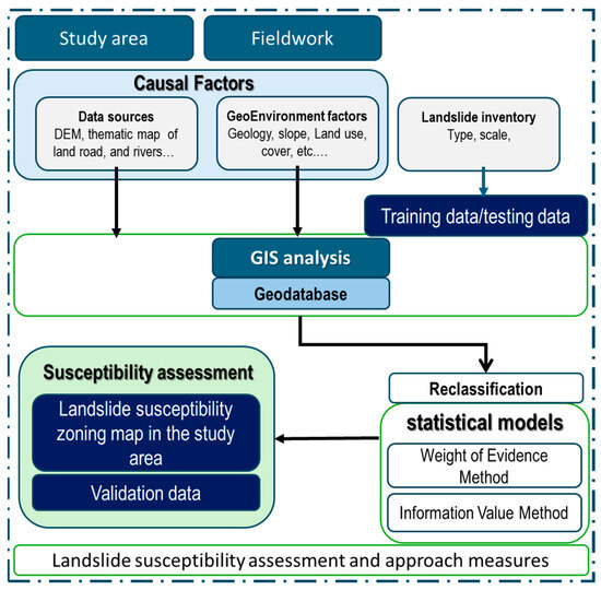 The WoE method calculates the weight of each landslide causal factor based on the presence or absence of landslides within the area. Its fundamental assumption is that future landslides will occur under conditions similar to those that contributed to past landslides [32].