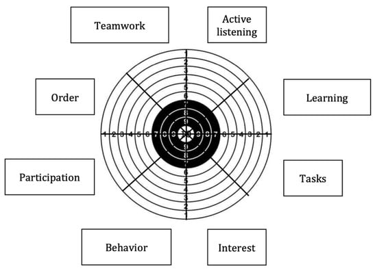 Figure 1). This approach fosters self-reflection, encourages self-regulation, and empowers students as active participants in their learning. The self-assessment target accounted for 30% of each student’s overall grade for the learning situation (LS), providing insight into aspects such as organization, teamwork, and active listening.