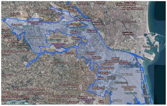 Figure 4) and “La Ribera Baja” (downstream of the Magre river). These are among the most flood-prone areas in the Valencian Community, as identified by PATRICOVA in the ICV’s cartographic viewer.