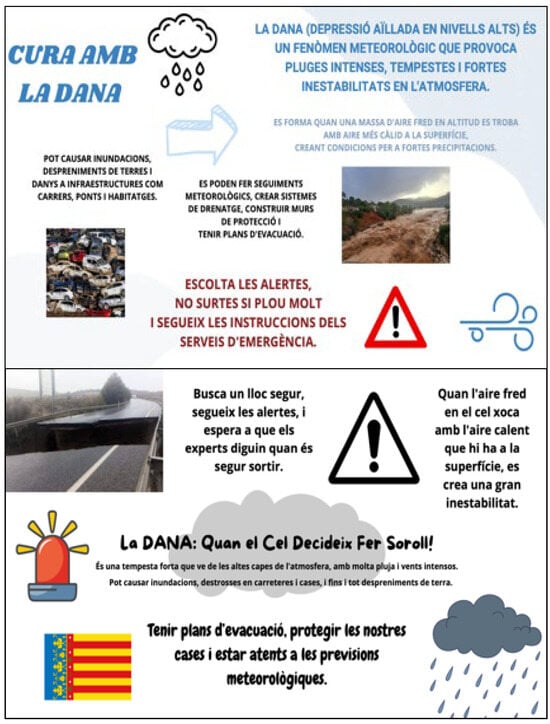 The 2024 DANA event in Valencia provided an opportunity to improve students’ understanding of extreme weather and disaster preparedness. This educational initiative aimed to enhance flood risk awareness and strengthen school preparedness through interactive strategies. Aligning with Velásquez & Alcántara [