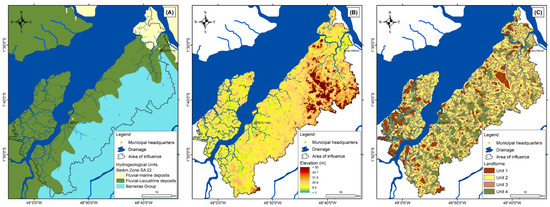 (A) Hydrogeological units, (B) elevation levels, and (C) landforms: geological and geomorphological evaluation.