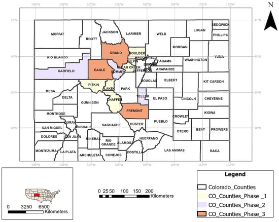 The focus areas for this project are directly related to regions experiencing high development pressure and land use needs, as well as areas with heightened wildfire risk in western Colorado. As of Summer 2025, Figure 2 denotes the counties that have completed LAF mapping (Phase 1) and are making progress for 2025 completion (Phases 2 and 3). Other counties are scheduled for completion in 2026. The CGS and the Colorado Water Conservation Board (CWCB), which is under the Colorado Department of Natural Resources (DNR), collaborated to identify high-risk areas based on the current stakeholders’ needs.
