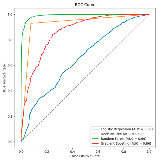 The ROC curve is a graphical tool that illustrates how well a model distinguishes between classes at different threshold levels. In contrast, the AUC provides a concise numerical value that reflects the model’s overall capacity to differentiate between positive and negative instances [24]. Together, the ROC and AUC metrics serve as critical tools for benchmarking classifier performance and identifying the most effective model among those tested.