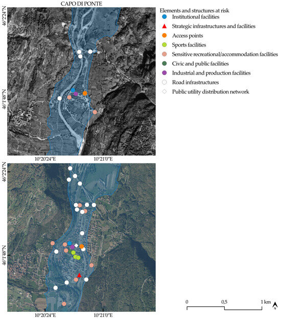 Similarly, to the classification-based assessment of the area surrounding the hydraulic retention structure, a specific set of considerations is proposed to evaluate the downstream river reach, based on a range of factors (Table 2). This analysis aims to contextualize the increasing severity of potential adverse impacts resulting from dam-break scenarios or flood events triggered by operational maneuvers, particularly in a territory that has undergone substantial transformation since the dam was originally constructed.