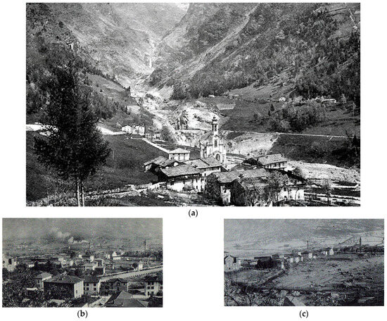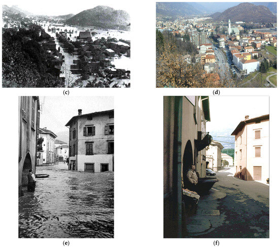 The 16–17 September 1960 flood event was considered as the main flood event in 20th century for Valcamonica, causing over 205 million euros in damages [96] (corresponding at 13 billion Italian Lire of 1960 [97]). This flood event has damaged almost half of the Valcamonica municipalities (18 over 37), the majority of them situated in the floodplain (Figure 4).