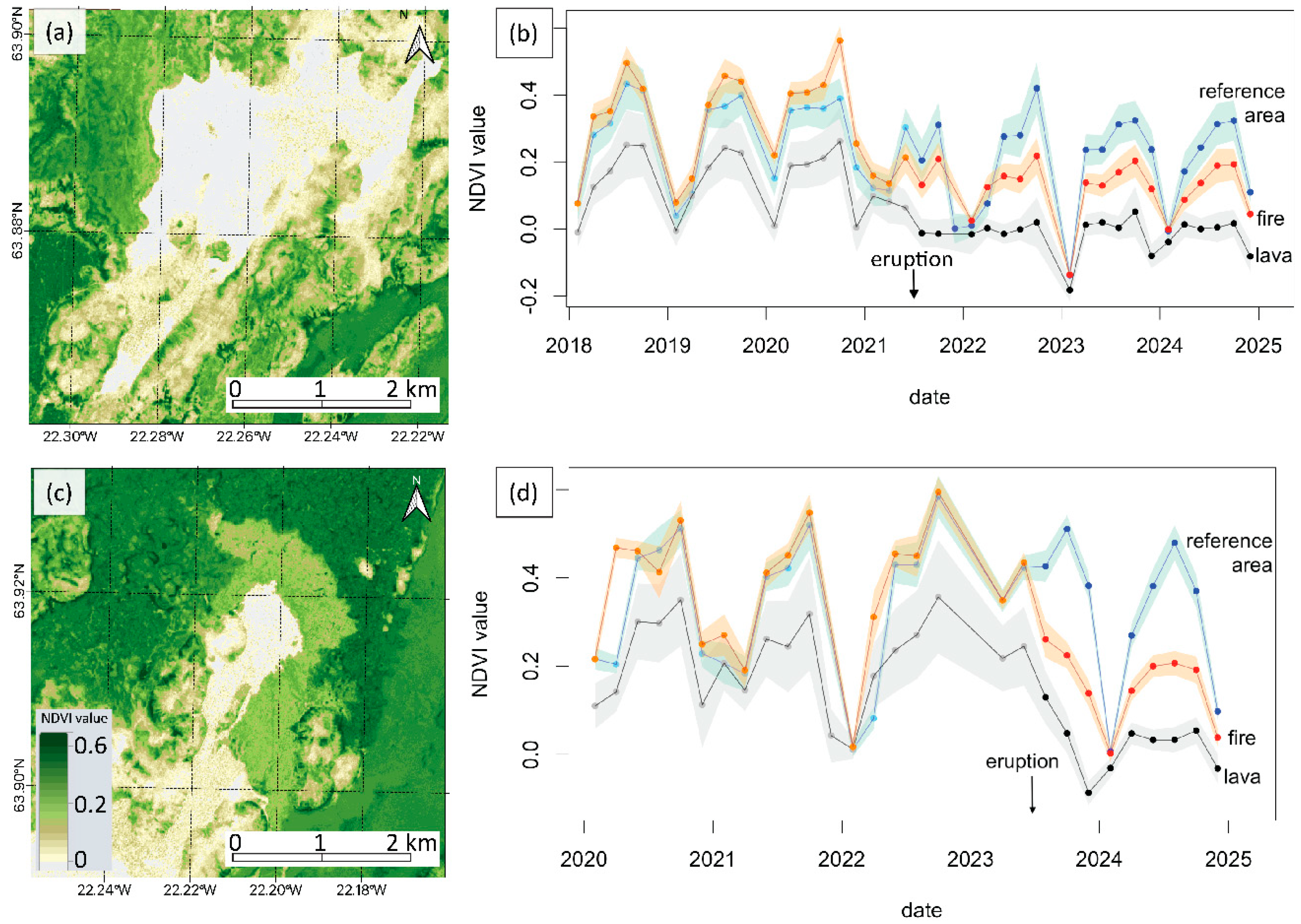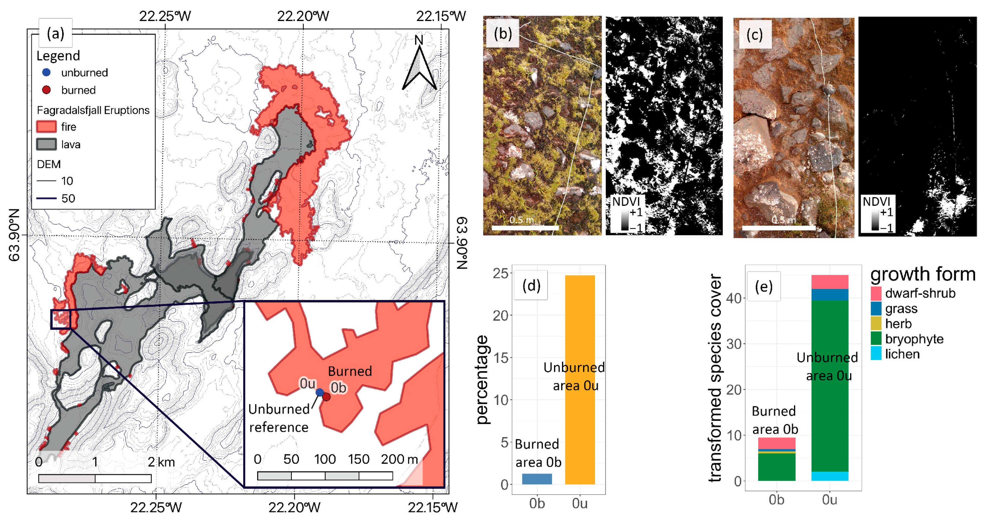 Schiffmann, J.; Walter, T.R.; Sobolewski, L.; Heinken, T. Volcanic Eruptions and Moss Heath Wildfires on Iceland’s Reykjanes Peninsula: Satellite and Field Perspectives on Disturbance and Recovery. GeoHazards 2025, 6, 70. https://doi.org/10.3390/geohazards6040070