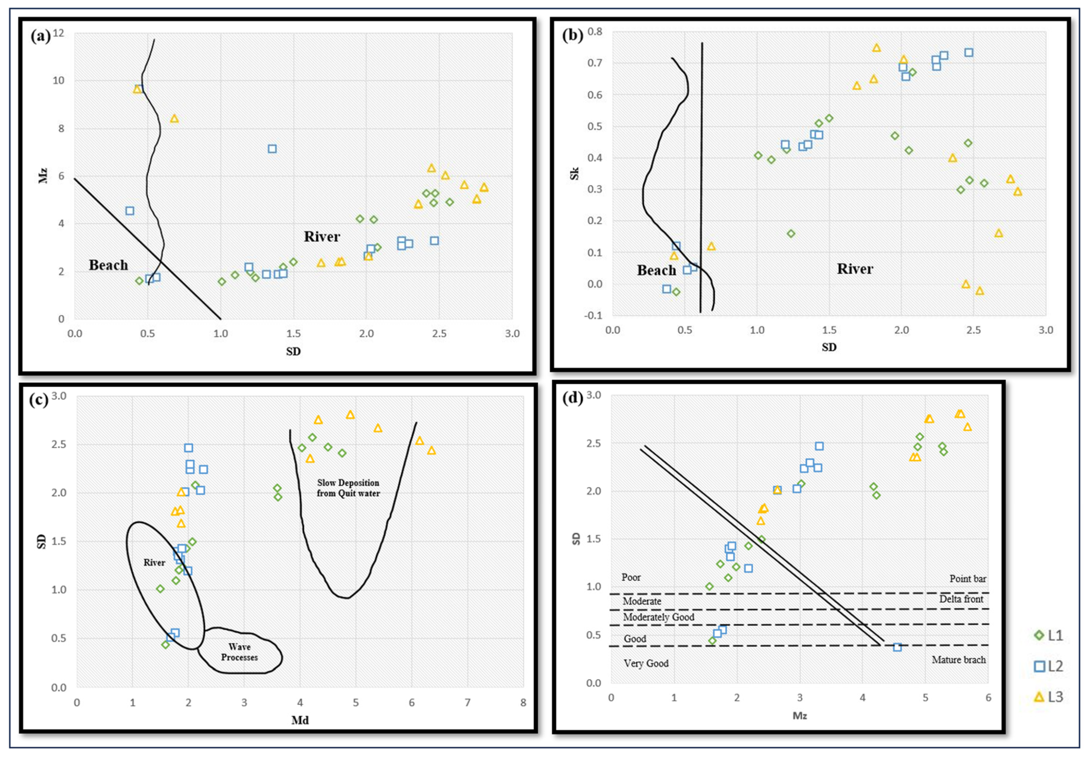 - Folk, R.L.; Ward, W.C. Brazos River Bar: A Study in the Significance of Grain Size Parameters. J. Sediment. Petrol. 1957, 27, 3–26. [Google Scholar] [CrossRef]