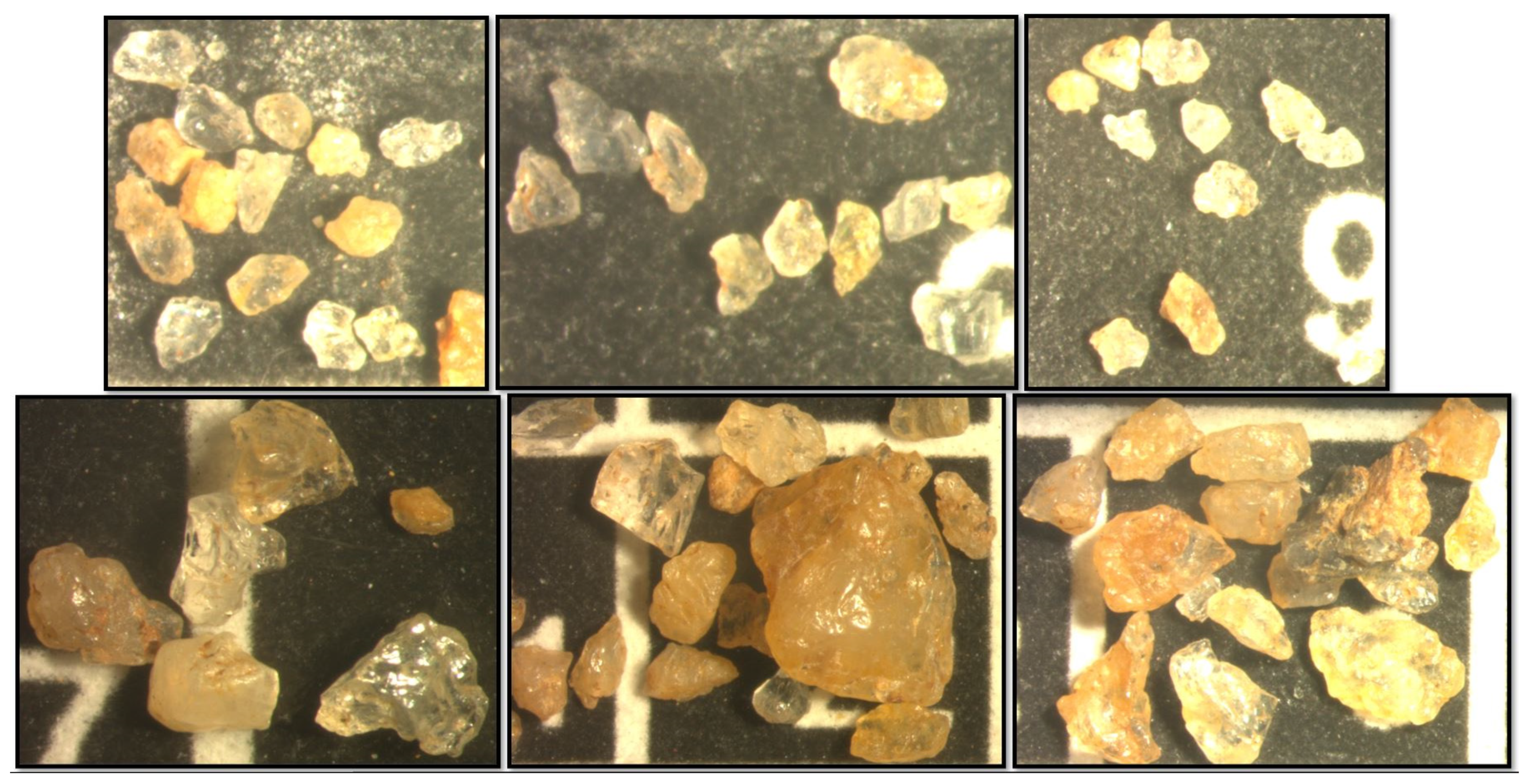 | 6 | 26 | Unimodal | 0.967 | 1.237 | 0.161 | 1.148 | Coarse Sand | Poorly Sorted | Fine-Skewed | Leptokurtic |