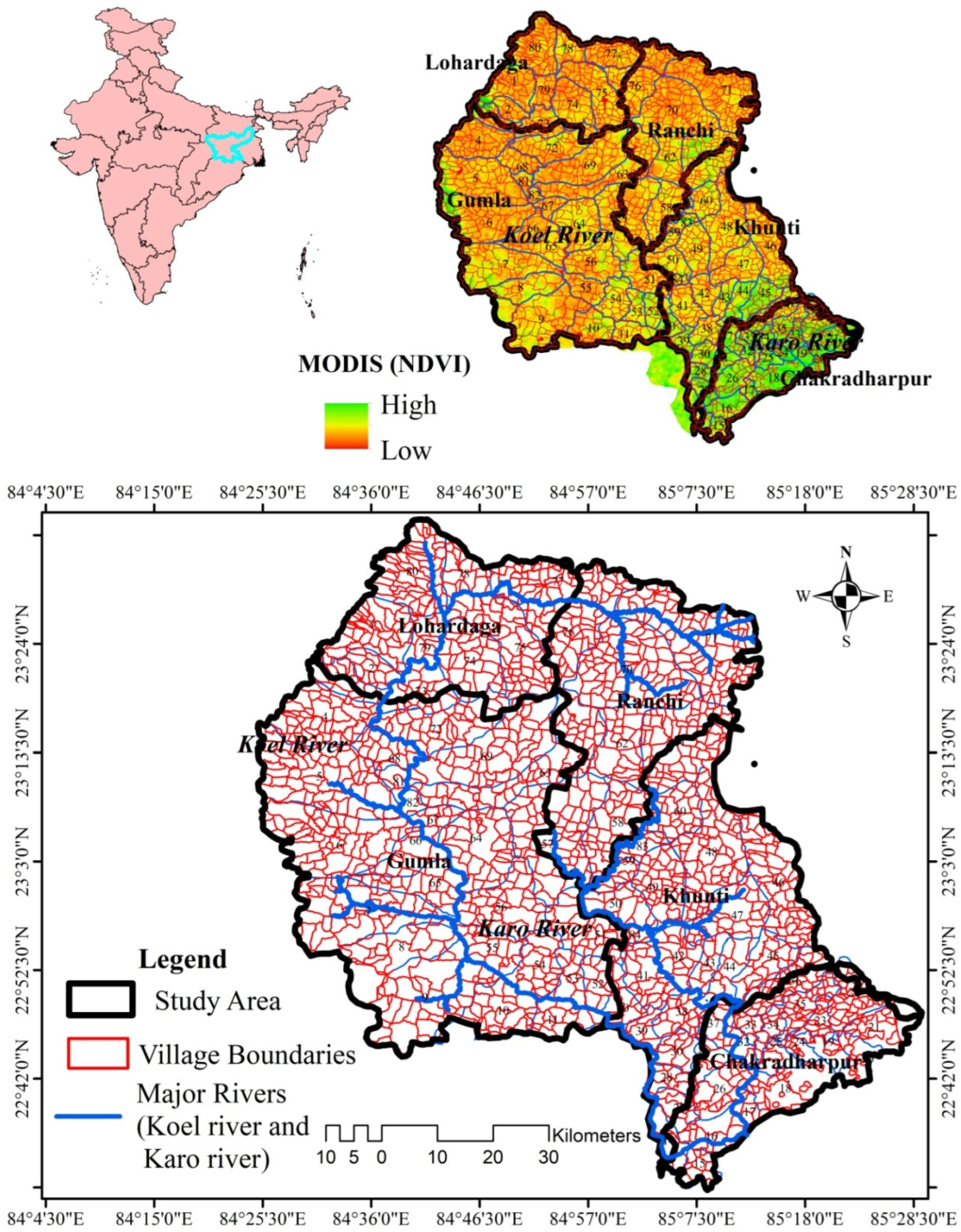 - Pandey, R.; Kumar, P.; Singh, R.K. Socio-economic vulnerability and adaptation in tribal Jharkhand. J. Rural. Stud. 2022, 90, 66–75. [Google Scholar]