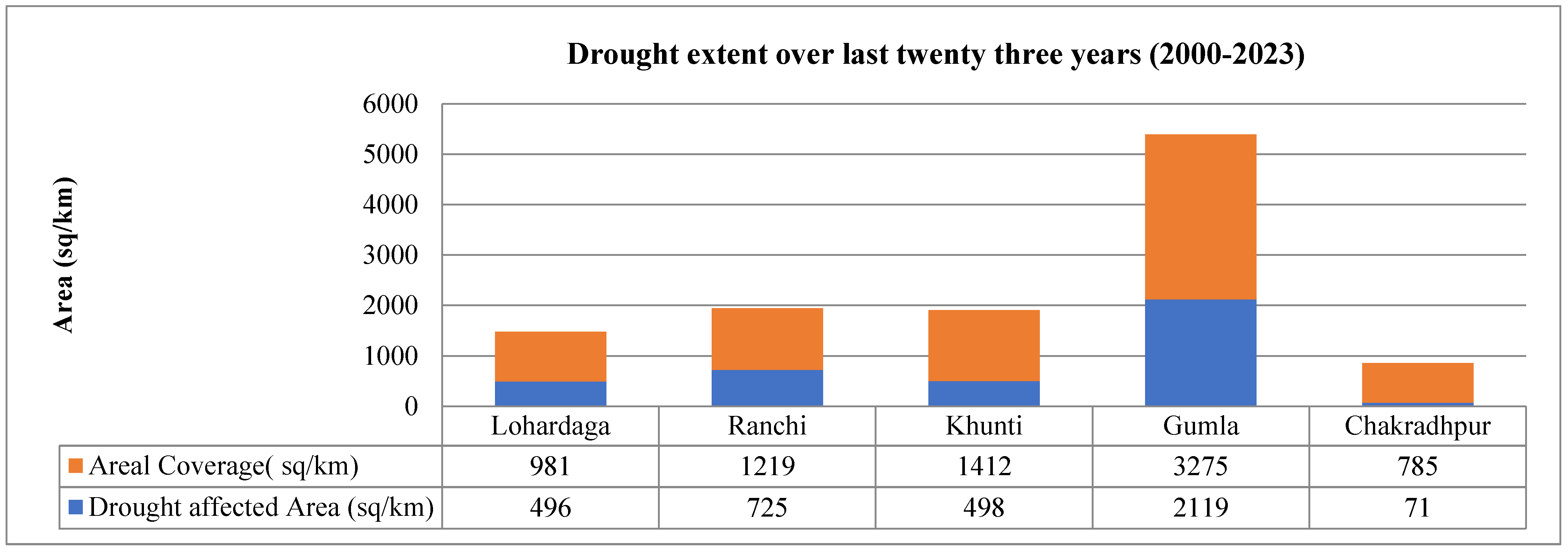 4.3. Spatio-Temporal Annual Drought Extent Map During 2000–2023