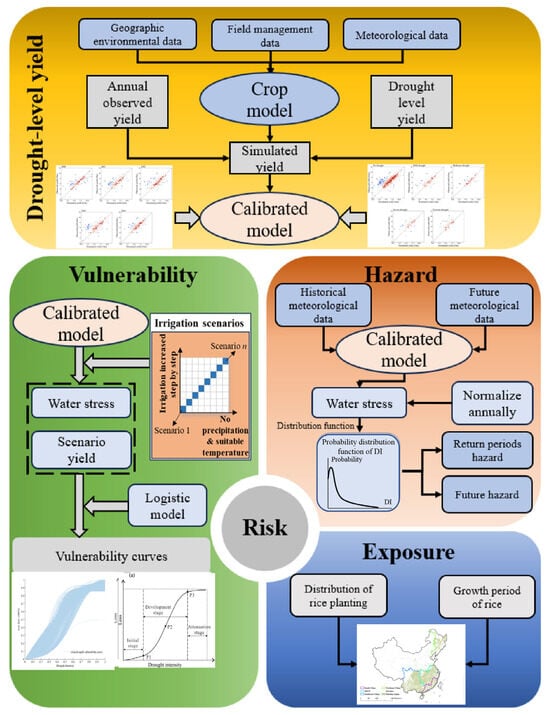 Figure 2. Risk assessment framework. The probability distribution function of drought intensity of each evaluation unit was coupled with the physical vulnerability curve of rice to obtain the final probability distribution function of rice drought loss rate.