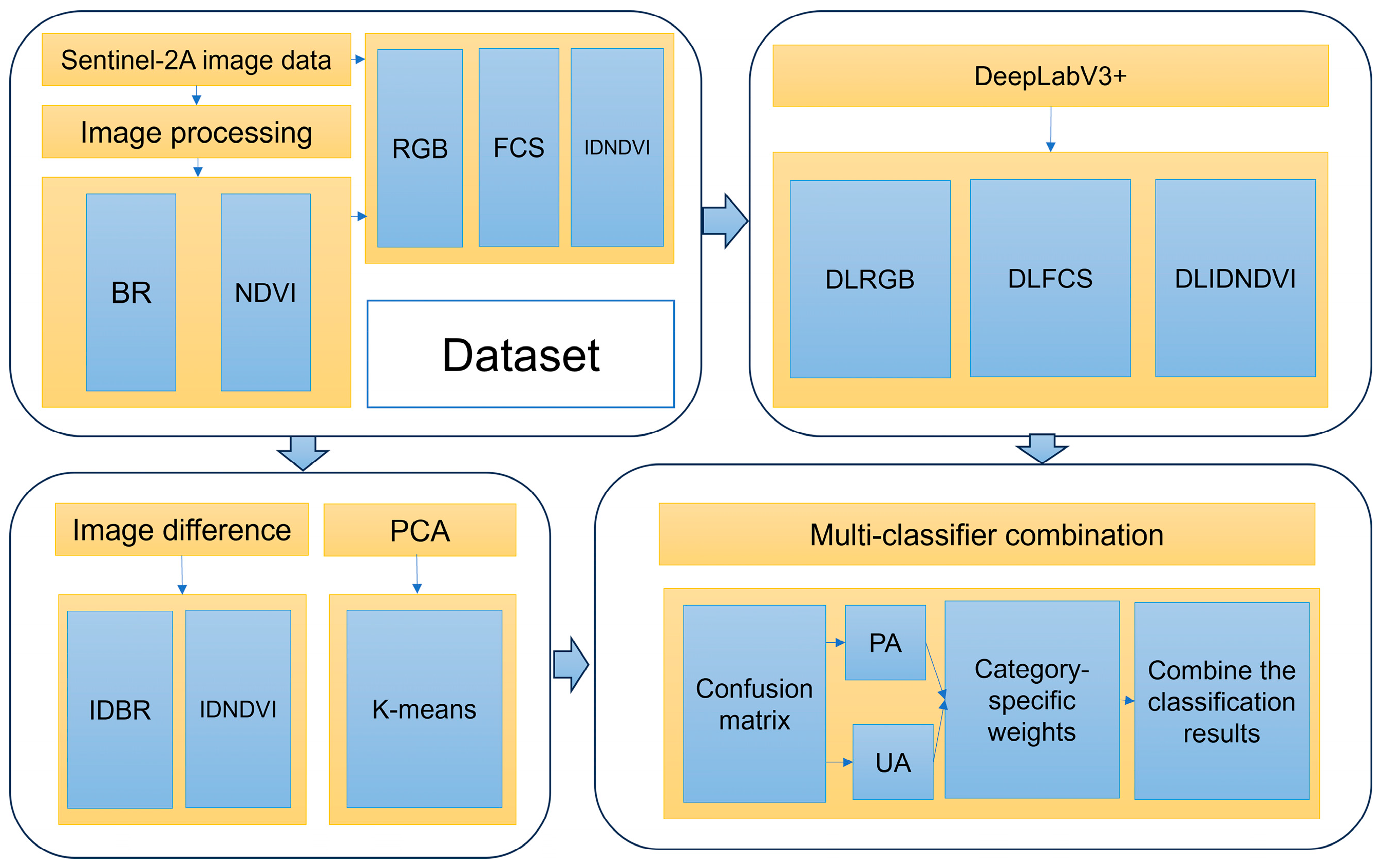 - Conduct a comparative analysis between the combination results of multi-classifier classification and six single classifiers.