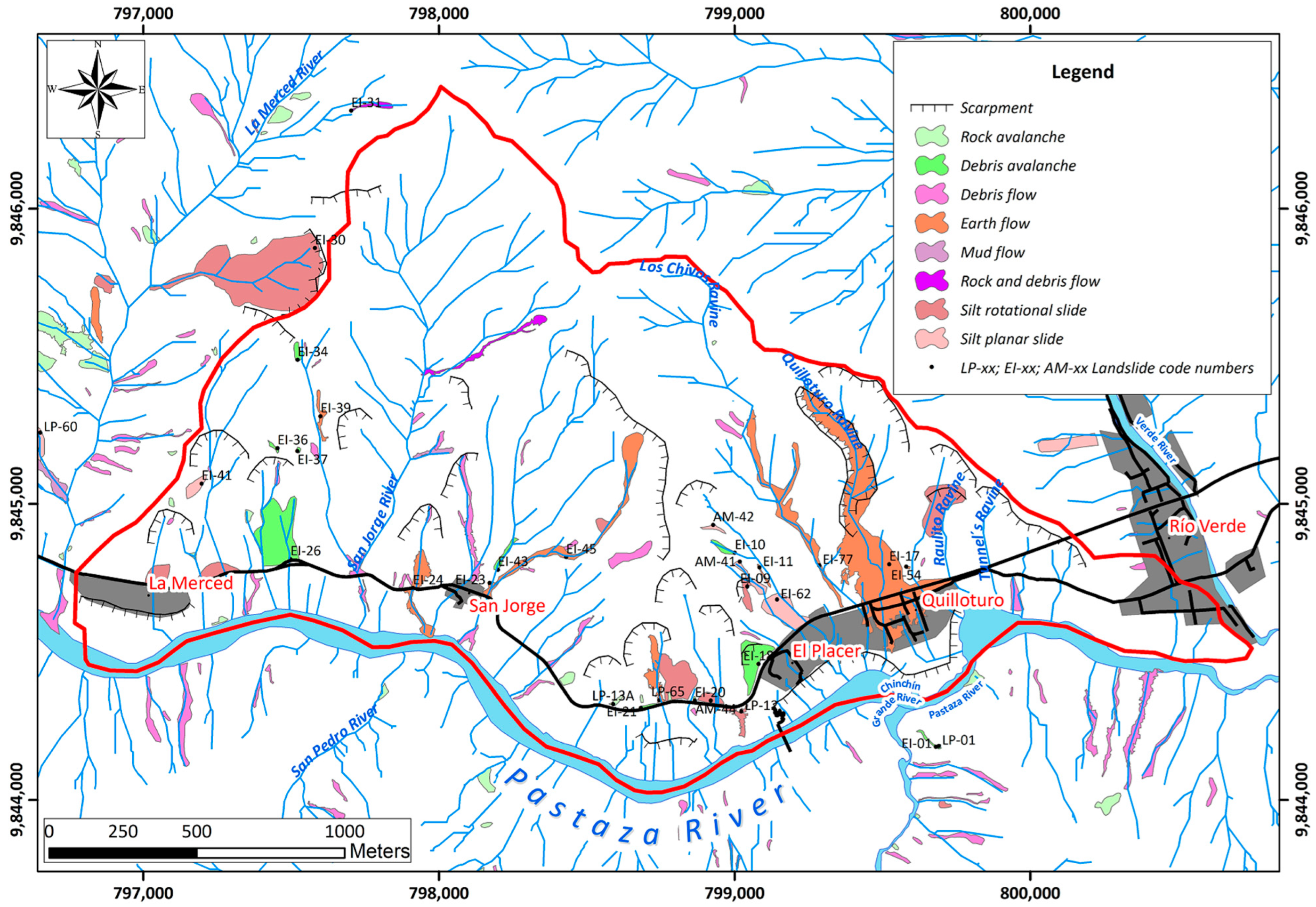 35. Riemer, W.; Locher, T.; Núñez, I. Mechanics of Deep Seated Mass Movements in Metamorphic Rocks of the Ecuadorian Andes. In Proceedings of the Fifth International Symposium On Landslides, Lausanne, Switzerland, 10–15 July 1988; A.A. Balkema, Brookfield, Rotterdam: Laussane, Switzerland, 1988; Volume 1, pp. 307–310. [Google Scholar]