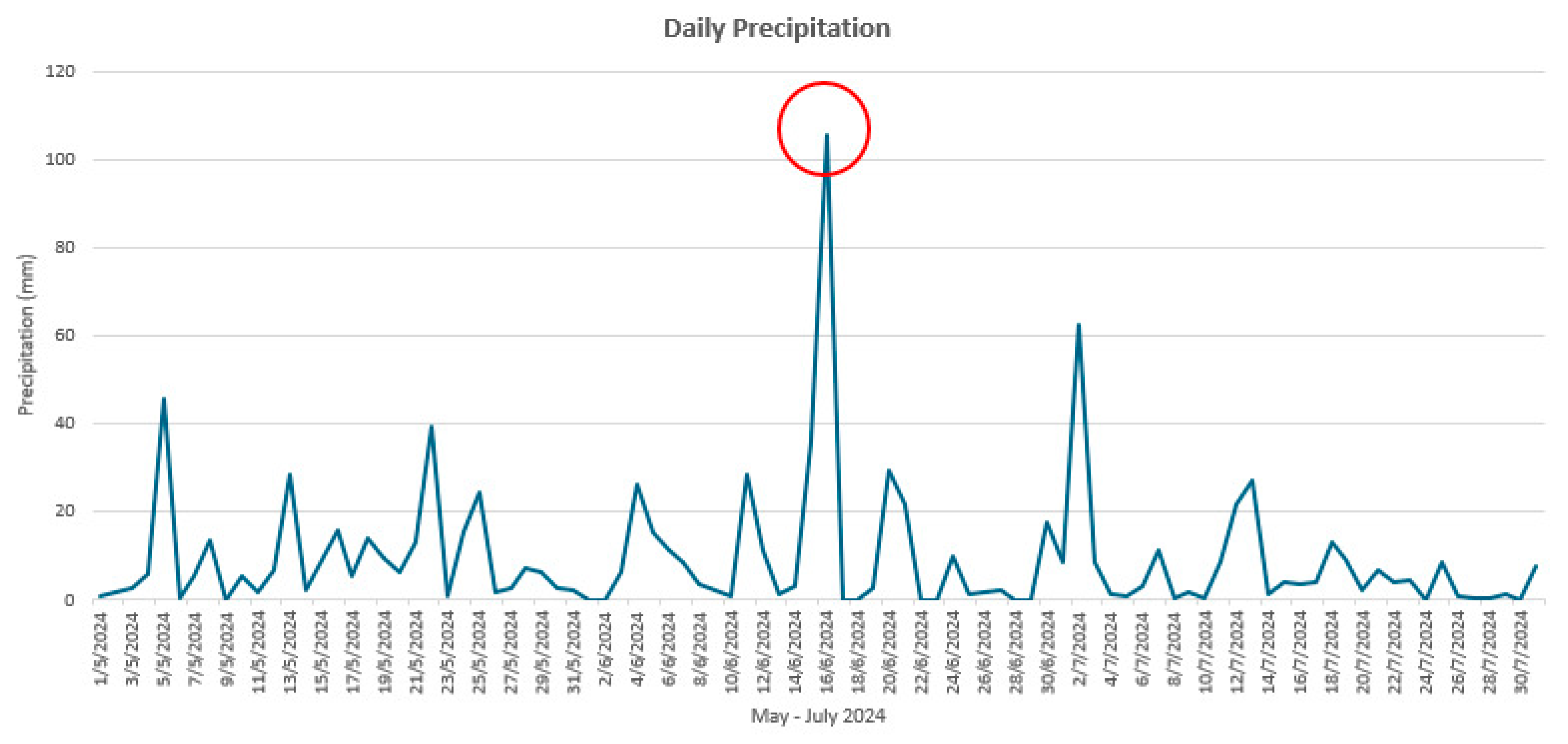 Analysis of precipitation and the event of 16 June 2024. This included comparing recorded rainfall with previous years, identifying and describing the mass movements documented by the community, and recognizing natural “premonitory” factors observed by the inhabitants.