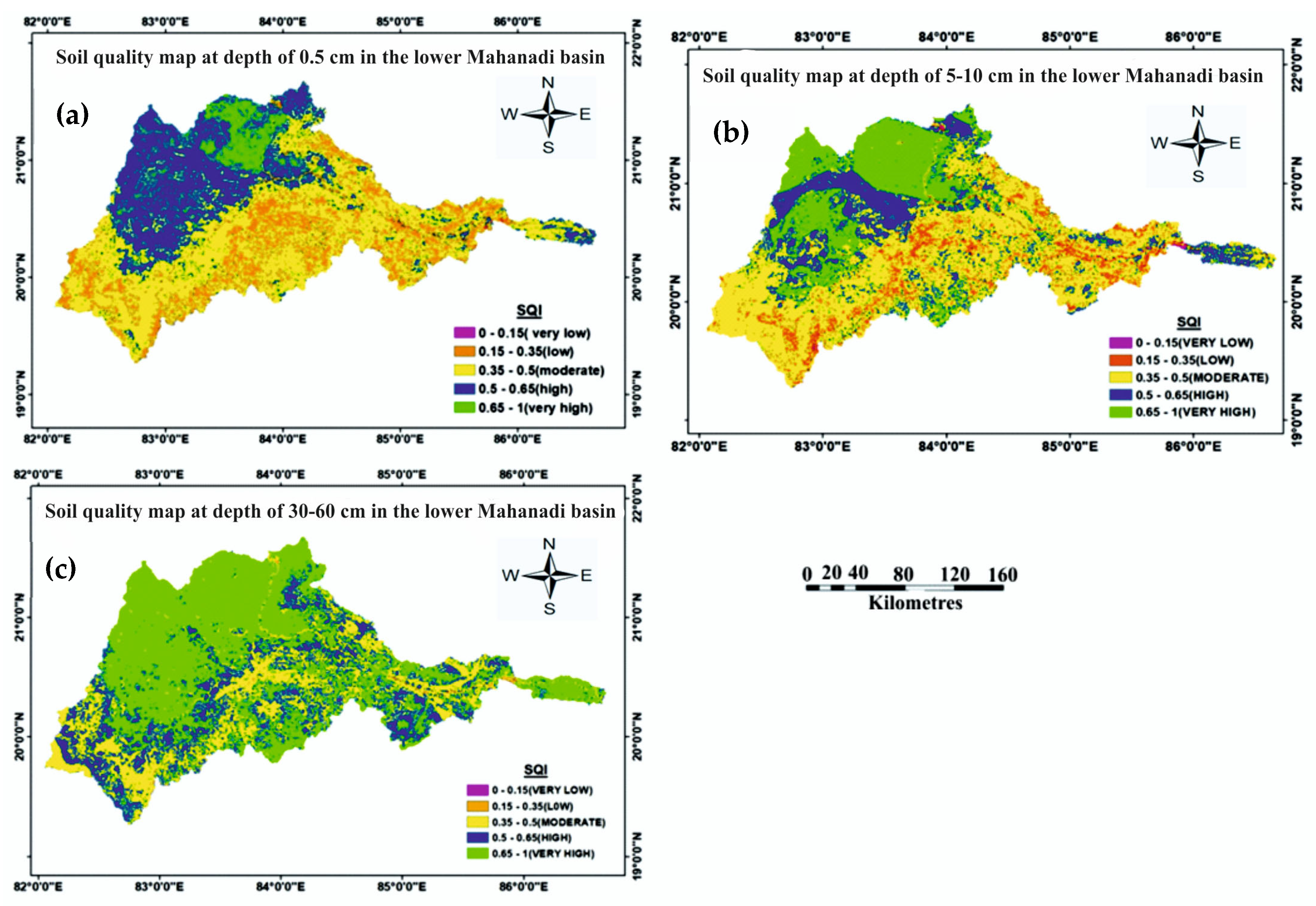 - Vasu, D.; Singh, S.K.; Ray, S.K.; Duraisami, V.P.; Tiwary, P.; Chandran, P.; Nimkar, A.M.; Anantwar, S.G. Soil Quality Index (SQI) as a Tool to Evaluate Crop Productivity in Semi-Arid Deccan Plateau, India. Geoderma 2016, 282, 70–79. [Google Scholar] [CrossRef]