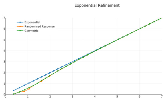 - We apply the three orders (, , and ) to the comparison of some well-known families of -private mechanisms: geometric, exponential and randomised response. We show that, in general, (and thus all the refinement orders between A and B) holds within the same family whenever the of B is smaller than that of A.