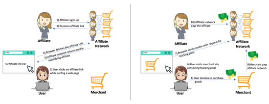 - Chachra, N.; Savage, S.; Voelker, G.M. Affiliate crookies: Characterizing affiliate marketing abuse. In Proceedings of the 2015 Internet Measurement Conference, IMC’15, Association for Computing Machinery, New York, NY, USA, 28–30 October 2015; pp. 41–47. [Google Scholar]
