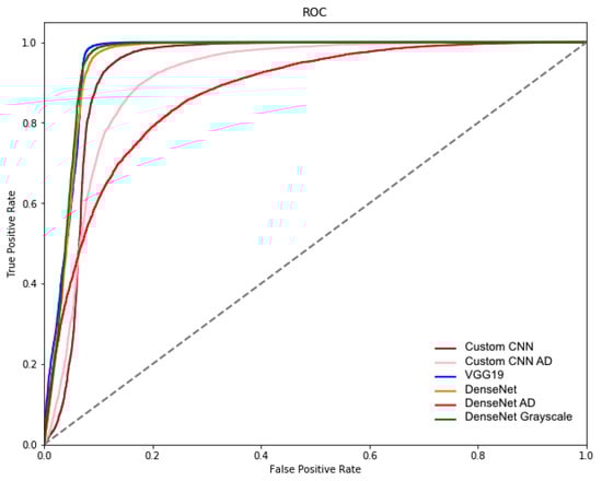 The accuracy, precision and recall rates of analyzed models demonstrated in Table 5, the ROC curve demonstrated in Figure 4, the area under the ROC curve (AUC), F1-scores and AP results demonstrated in Table 6 were used to evaluate model performance in terms of separability and their ability to differentiate between classes. The algorithm comparison results revealed that the VGG-19 model had the best performance among all 3 other algorithms, with an accuracy level of 95%.