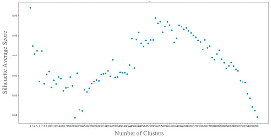 An important result coming out of this stage of our research is obtaining the Silhouette and Davies–Bouldin scores, which were obtained by performing clustering on the two data subsets with a gradually increasing number of assumed clusters [54,55]. The Silhouette score measures how similar an object is to its own cluster (cohesion) compared with other clusters (separation). A higher Silhouette value implies that points are well matched to their own cluster and poorly matched to neighboring clusters. The Davies–Bouldin score is the average similarity measure of each cluster with its most similar cluster. Clusters that are farther apart and less dispersed will result in a higher Davies–Bouldin score.