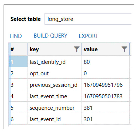 Most notably, the recovered Android artifacts may help paint a picture of when and where the user used the app or the system, respectively. Session-related logs were recovered from both the \app_bugfender folder and the \databases\com.amplitude.api database. Figure 5 depicts the content of the long_store table within this database. These logs include session, device, and user ID numbers, network connection, failure logs, and session start and end timestamps, among others (Figure 6).