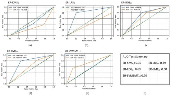 Before applying the oversampling methods, we normalized the PiB dataset’s numerical features. Then, we transformed the categorical features using one-hot encoding before splitting the transformed dataset into the training and testing datasets. As a result, before sampling, the training dataset had 90 features and 1600 examples, whereas the testing dataset set had a similar number of features but 400 examples. Additionally, the testing dataset was independent of oversampling; however, the training data depended on oversampling. Consequently, the number of examples in the training dataset changed after sampling.