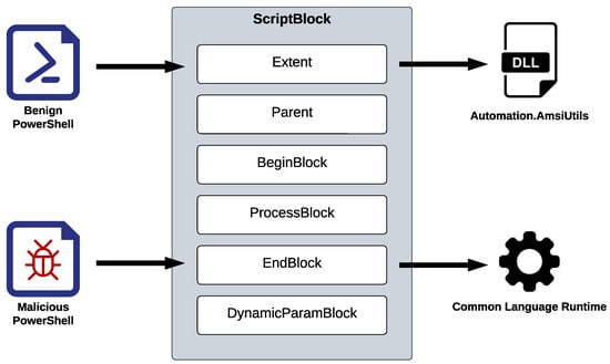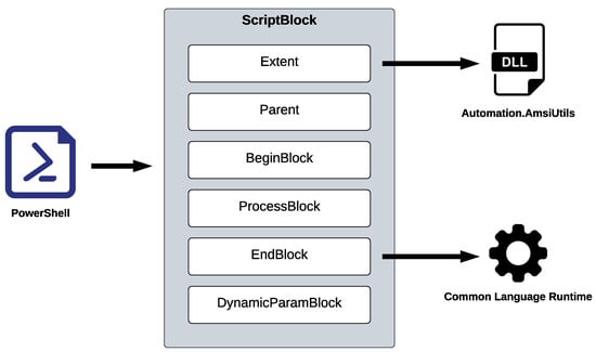 - Microsoft. ScriptBlockAst Class. 2023. Available online: https://learn.microsoft.com/en-us/dotnet/api/system.management.automation.language.scriptblockast?view=powershellsdk-7.3.0 (accessed on 19 March 2024).