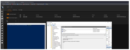 In the aftermath of these initial bypasses, the attacker progresses to the payload delivery phase. Utilizing the compromised system’s PowerShell environment, a second ScriptBlock fetches and executes a remote payload from a specified attacker-controlled server, known as a Command and Control (C2) server. This payload, typically a script or executable, is then executed directly on the target system to deploy a post-exploitation implant, such as Empire [24]. Empire is a C2 framework that allows for extensive control over the target system. By fetching and executing a remote payload, the attacker establishes a foothold, enabling them to execute commands, exfiltrate data, and maintain persistent access without triggering logging mechanisms or antivirus detection, as depicted in Figure 11.