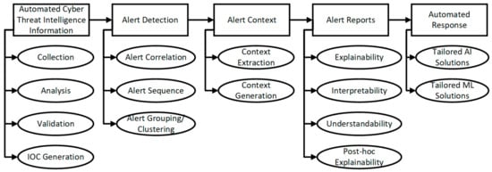 The distinction between these terms is also supported by [44]. The four-construct model in Figure 4 illustrates that the automation of explainable and interpretable alert reports can be implemented to varying degrees, with the recommendation that all four concepts are adhered to.
