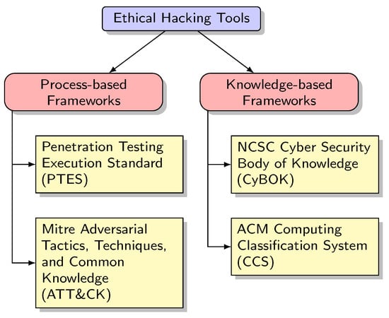 - Alignment with Recognised Frameworks: This study categorises the tools into process-based frameworks, such as the Penetration Testing Execution Standard (PTES) [9], and the Mitre ATT&CK framework [10] and knowledge-based frameworks like the National Cyber Security Centre’s Cyber Security Body Of Knowledge (CyBOK) [11] and the Association for Computing Machinery’s Computing Classification System (ACM CCS) [12]. Combining these four classifications offers an informative view of the landscape of novel and research-informed ethical tools, their functionality, and application domain for the benefit of scholars, researchers, and practitioners.