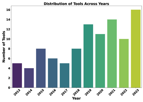 - Open source availability: The tool should be open source, and the source code (or distribution package) should be freely available. However, this requirement was relaxed throughout the research as we acknowledged that some tools may not be open-source for various reasons, such as their proprietary nature, pending patents, or limited accessibility.