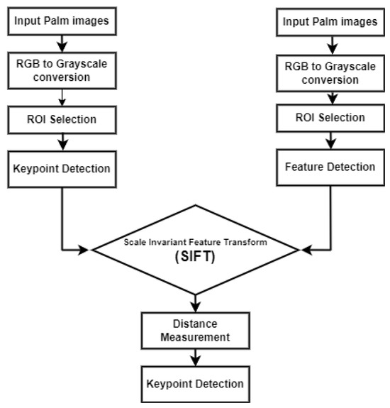 The SIFT-based image processing method was applied to further eliminate unwanted images. The training samples were resized to match the test samples, and all images were resized to 205 × 345 pixels to focus on the region of interest (ROI), specifically the palm.