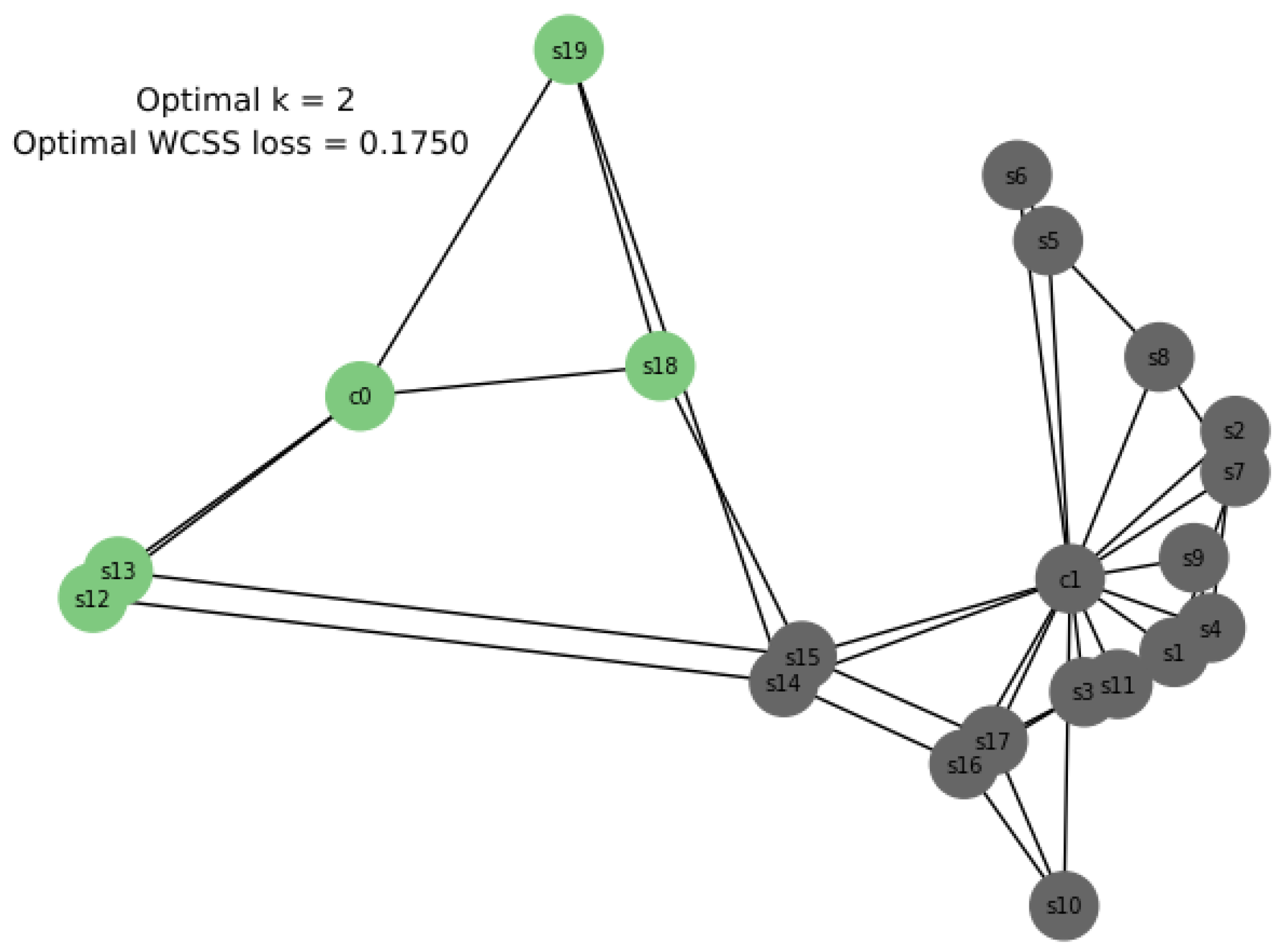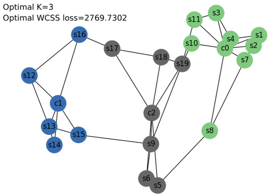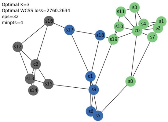 From the topology, its graph G contains vertices V and edges E, where V represents and , and edges contains the attribute denoting the bandwidth between any two vertices. The C term represents controllers. The L term represents the minimum within-cluster sum of squares (WCSS) loss value. Algorithm 1 shows the implementation of K-means++ and OPTICS to obtain an optimal controller placement.