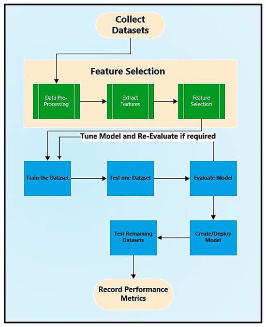 The main objectives of this paper are to develop a methodology and approach for detecting several banking malware variants’ Command and Control (C&C) communication network traffic and to distinguish this from benign network traffic using binary classification machine learning (ML) algorithms. For this research, machine learning algorithms are used rather than deep learning algorithms or neural networks. The rationale for this is that, firstly, machine learning algorithms are preferred for smaller datasets. This is because machine learning algorithms can perform well even with limited data. Deep learning algorithms require large amounts of data to perform effectively and have many parameters that need to be tuned. Machine learning algorithms also require fewer computational resources and can be deployed quickly, which could help to identify malware more rapidly and effectively [15,16]. Ref. [17] also conducted extensive research in this area and compared several binary classification and deep learning algorithms, using these to detect banking malware C&C communication traffic. The paper demonstrated that machine learning algorithms are more than capable of detecting banking malware, and in fact, in many cases, machine learning algorithms performed much better than deep learning algorithms. The authors also discovered that developing and tuning deep learning algorithms can be complex, time consuming, and increases the training time.
