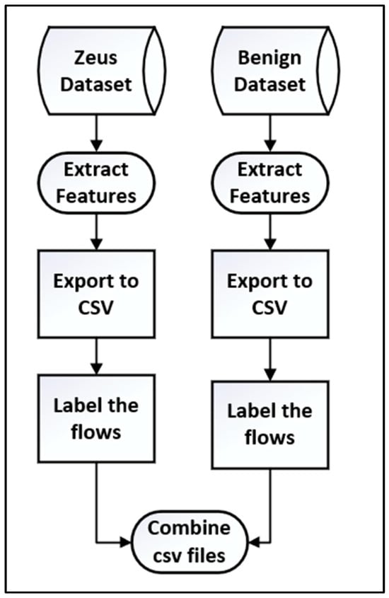 The authors in [45] used the Symbiotic Bod-Based (SBB) and C4.5 machine learning algorithms to create a framework for detecting malware communication traffic. Features were extracted from the communication (C&C) channels of various malware variants, which included the C&C communication traffic of the Zeus banking malware. The samples were obtained by generating C&C communication traffic to known malware domains. Additional malware samples were obtained from various sources, including NETRESEC and Zeustracker, and these were used in the experimental analysis. Table 6 shows the datasets that were used for the experimental analysis.