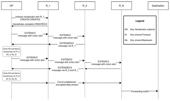Tor circuit creation. The /2 represents the version, as their older specifications have become obsolete [10].