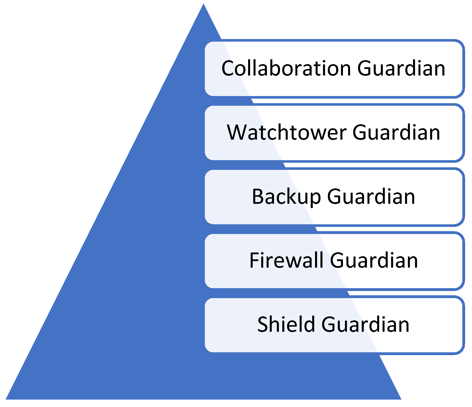 The framework structure of the CGF further drills down into five key pillars, each represented by a distinct “Cyber Guardian”, as follows: