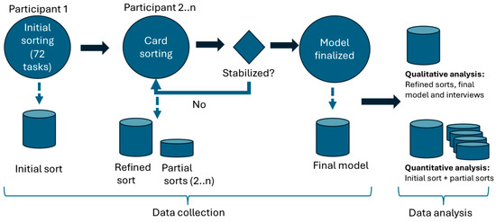 - Warm-up: Participants performed an open sort with ~35% of the task cards (derived from the document analysis), providing their initial, unbiased (by a previous sort) categorizations. This leveraged the participant’s inherent understanding and served as an accessible entry point for familiarization with the tool;