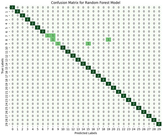 Firstly, the matrix illustrates diagonal clarity, where the majority of predictions are correctly classified. For example, most of the users have been successfully classified based on prediction accuracy, and this shows the great performance of our proposal. The given simulation results indicate that our proposed technique is able to correctly recognize between user touch dynamic patterns based on valuable selected features, including spatial coordinates (X, Y), interaction duration or velocity, and touch pressure intensity.