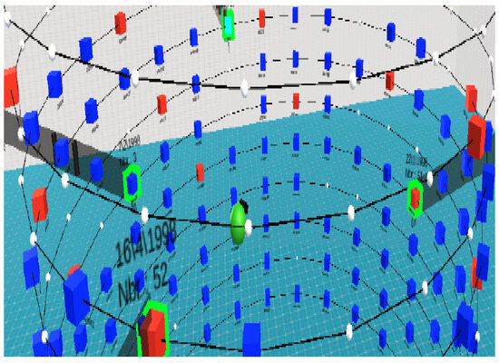 Geographical Displays: ICSA systems use geographical displays to represent cybersecurity data for creating cyber situational awareness. Geographical displays refer to the visualizations that present cybersecurity data with their geographical locations (e.g., position coordinates of longitude and latitude). The spatial information helps end-users (e.g., cybersecurity experts, trainees, and analysts) to understand a cyber situation, which facilitates their decision-making and execution of action plans accordingly. For instance, an immersive 3D Network Visualizer application, developed by Beitzel et al. [29], displays networks’ topology with their geographic coordinates. In each network topology, network nodes and edges are overlaid onto a real-world globe based on their geographical locations, as presented by Figure 2. It can also be seen that cybersecurity alerts/flags are placed on corresponding nodes and edges, which facilitates end-users in monitoring and detecting cybersecurity anomalies in large-scale networks.
