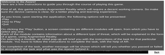 - Sharma, A.; Palrecha, D.; Parekh, M. Security Awareness Game (Augmented Reality). In Proceedings of the International Conference on Sustainable Computing in Science, Technology and Management (SUSCOM), Amity University Rajasthan, Jaipur, India, 26–28 February 2019. [Google Scholar]