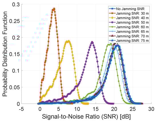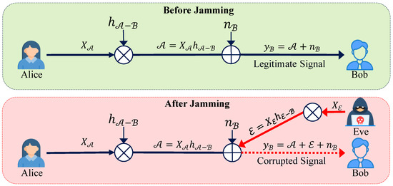 where represents the transmit signal power, denotes the jamming signal power, is the squared magnitude of the complex channel gain (where ), and is the corresponding noise power. We model the PLC channels as Rayleigh-fading channels, in line with the existing literature [58,59,60], with the Probability Density Function (PDF) expressed as follows