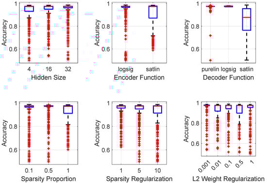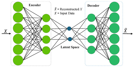 Autoencoders use a dimensionality reduction process to detect anomalies in the data. They assume that data are correlated and can be compressed into a lower-dimensional subspace where regular and anomalous data appear significantly different. An autoencoder tries to find the encoder that reduces the input dimension d to p, . Then, a decoder maps the latent representation of the encoder p to the original input space d, , which satisfies Equation (3).