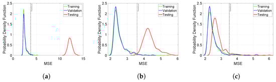 where E represents the expected distribution of the input data x, and is the reconstruction loss function to measure the distance between the input and the output of the decoder [55]. In our case, the loss function is the Mean Squared Error (MSE) function, in line with other relevant scientific research such as [19,55,56], and defined as per Equation (4) on distributions x and y.