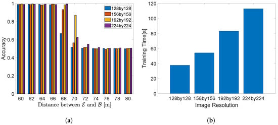 Table 3 summarizes our dataset configuration. We consider different configurations with the aim of obtaining balanced datasets of jammed and non-jammed samples that can be compared; i.e., all the configurations resort to 750 images. As discussed before, translating I−Q samples into images is an important step propaedeutical to the classification process. Therefore, we consider different image resolutions, as depicted in Table 3. In order to achieve uniform dataset sizes when applying different image resolutions, we considered a consistent number of samples, i.e., bit streams of different lengths. Finally, each dataset is composed of 1500 images (750 for and each). During the training process, we randomly split into training set () and validation set (). From , we only selected the set of data to avoid the class imbalance problem for evaluation.