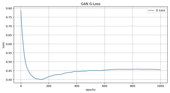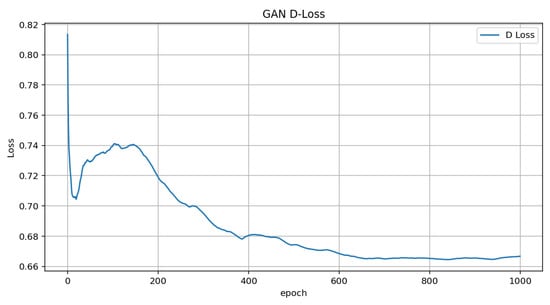 The GAN model converges effectively, with both the generator and discriminator reaching a stable equilibrium after sufficient training epochs. Figure 4 and Figure 5 illustrate that the discriminator loss (D-Loss) starts relatively low, increases slightly, decreases gradually, and stabilizes over the course of training. This indicates that the discriminator initially learns to distinguish real from generated data, and that its performance gets better up to the point where it stabilizes. Conversely, the generator loss (G-Loss) begins high, representing the initial difficulty of the generator in producing realistic data. However, it quickly decreases in the early epochs, showing that the generator is learning and refining its outputs. The G-Loss becomes stable with minimal variations after around 200 epochs, which shows a balance between the discriminator and generator.