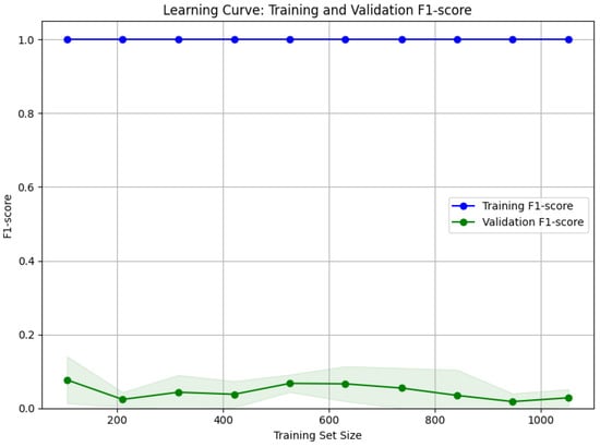 To address concerns regarding potential overfitting on a relatively small dataset, we conducted a detailed learning curve analysis (Figure 1), which plots training and validation F1-score as a function of training set size. The curves demonstrate that model performance steadily improves with increasing data volume and approaches saturation near the full dataset size, indicating adequate sample complexity for the employed models and no marked overfitting. Moreover, the convergence gap between training and validation metrics remains small, providing further evidence of good generalization.