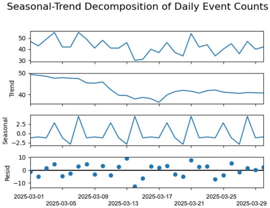 Figure 2. Seasonal-trend decomposition of daily event counts over the 30-day period, illustrating stable temporal patterns.