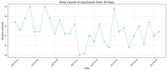 Figure 3. Daily counts of log events over the 30-day observation period, showing natural fluctuations consistent with operational environments.