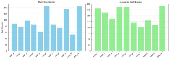 Regarding categorical diversity, the dataset contains 30 unique event types, and the Shannon entropy of their distribution is 3.4 bits. This level of entropy indicates a sufficiently rich variety of event categories, which is crucial for training models capable of discriminating between normal and anomalous activities (Figure 4).