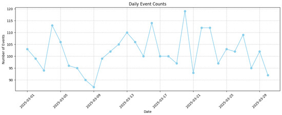 Figure 7. Daily event counts over the observation period, demonstrating temporal stability and continuity of logging.